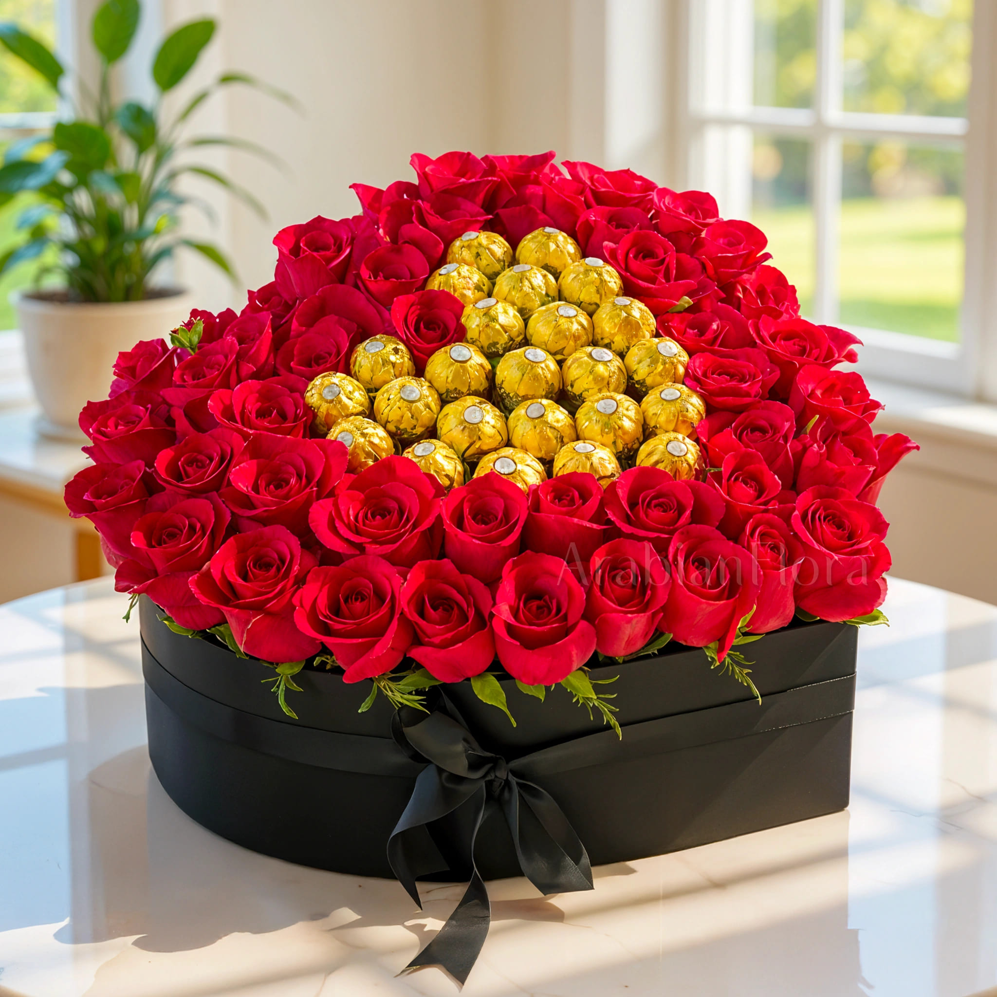 Buy valentine’s flowers gift with same day flower delivery in Garden Estate, Nairobi. Gift her this luxury ferrero chocolate roses flower box arrangement.