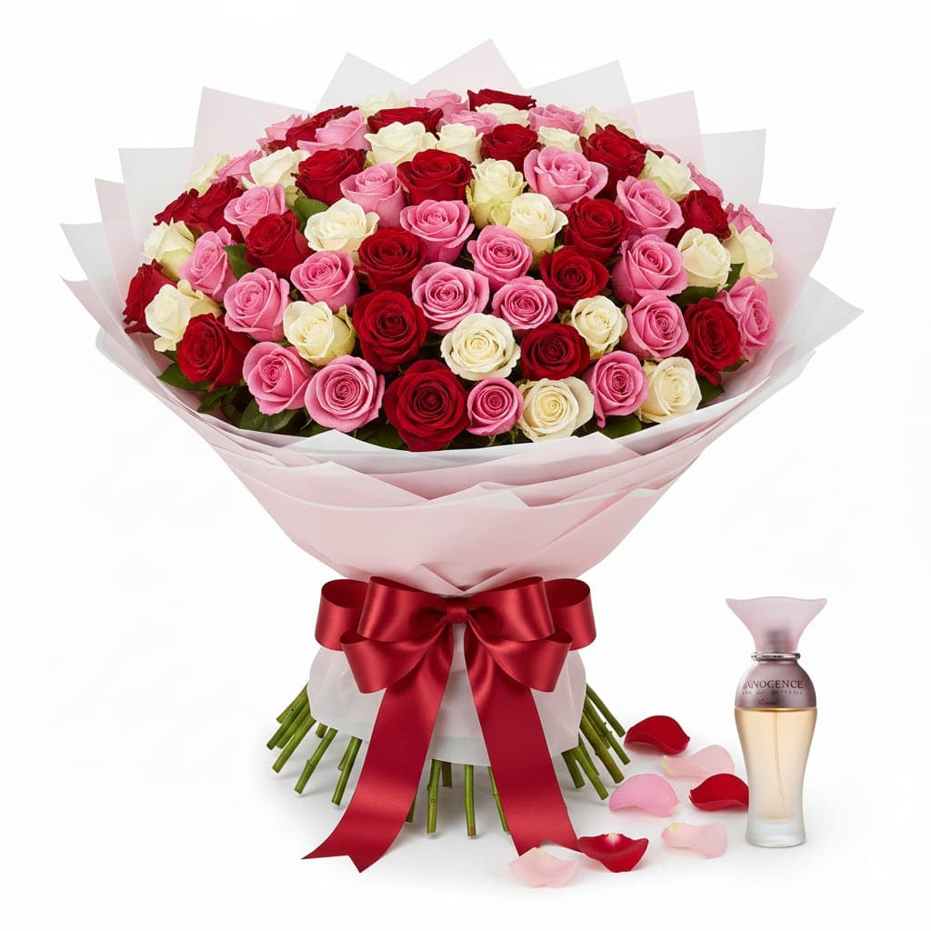 Luxury Mixed Roses Valentine Bouquet & Perfume – Langata Delivery